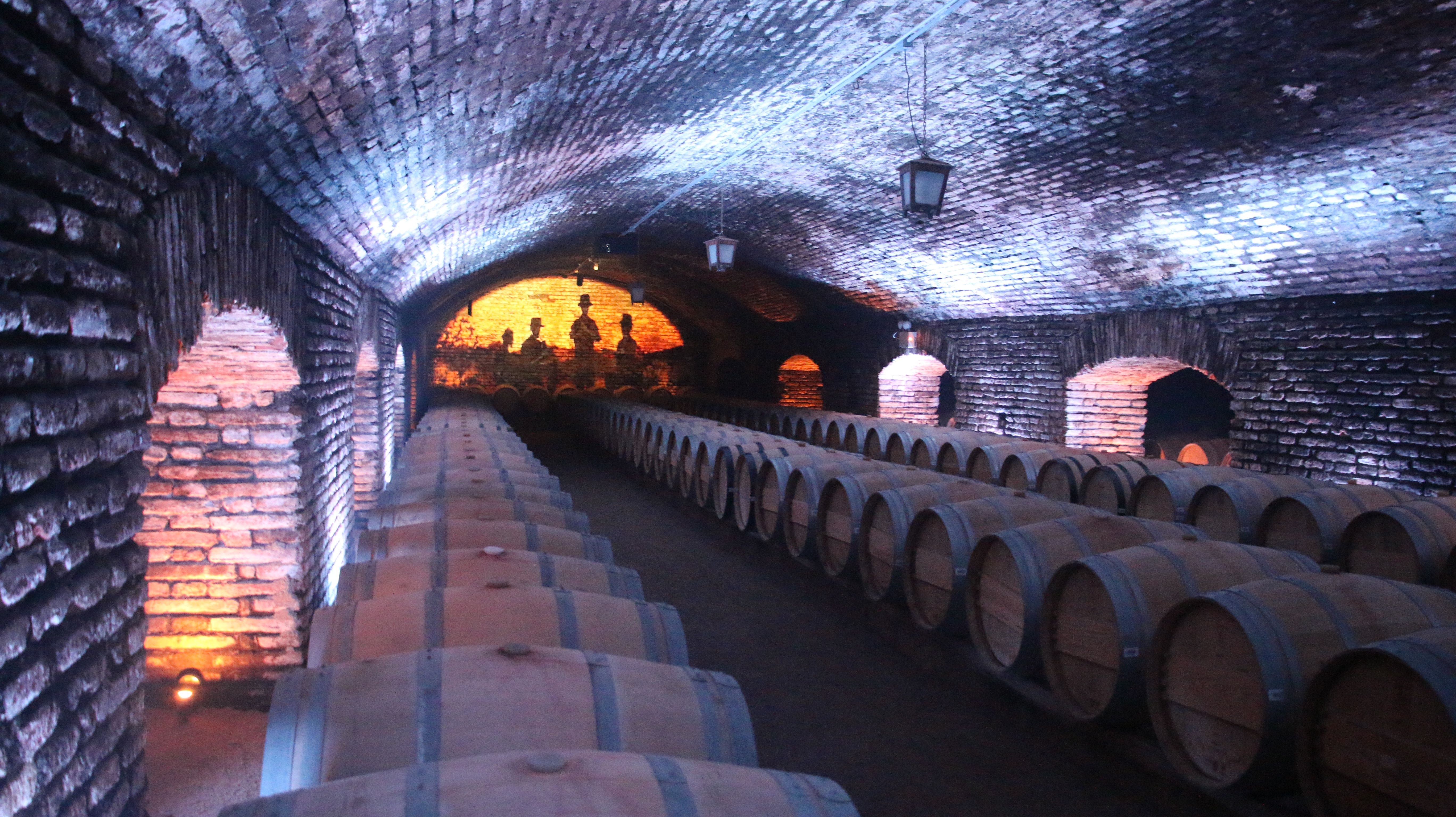 Where you see the eye is the short movie showing the history of the Casillero del Diablo projected onto the walls at the ends of each side in the barrel room.